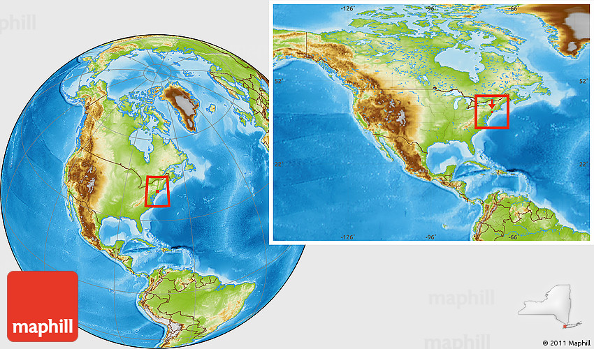 Maphill is a collection of map images. This image combines a physical map with the globe centered on ZIP code 10016. Use the buttons under the image to switch to different map types.