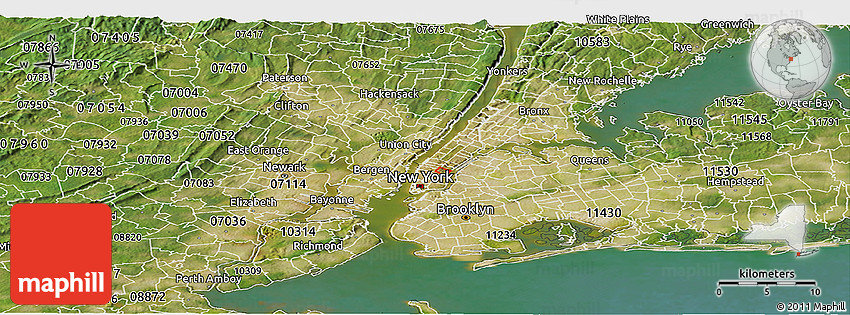 The panoramic satellite ZIP code map represents one of several map styles available. Look at ZIP code 10016 from different perspectives.