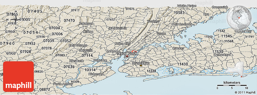 The panoramic shaded relief ZIP code map represents one of several map styles available. Look at ZIP code 10016 from different perspectives.