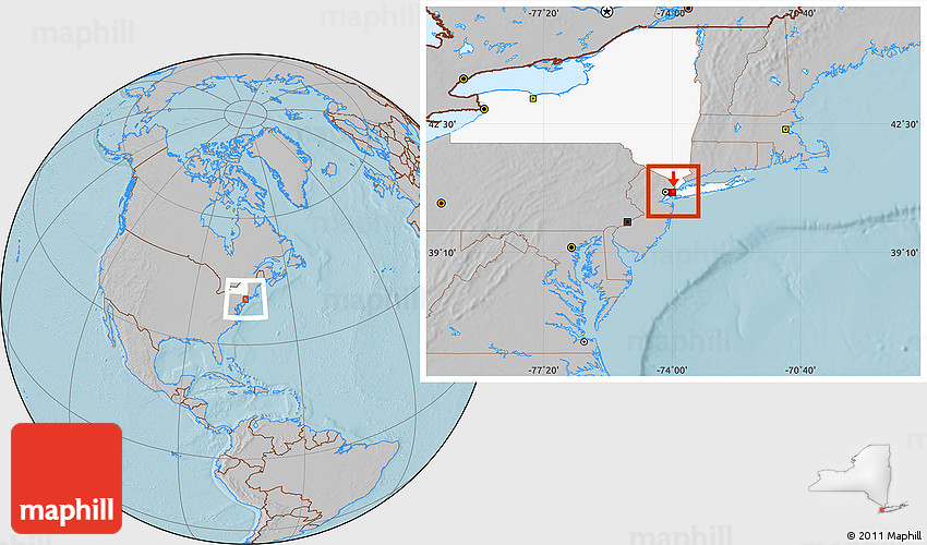 Maphill is a collection of map images. This image combines a gray map with the globe centered on ZIP code 10017. Use the buttons under the image to switch to different map types.