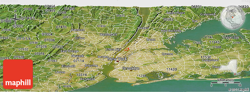 The panoramic satellite ZIP code map represents one of several map styles available. Look at ZIP code 10025 from different perspectives.