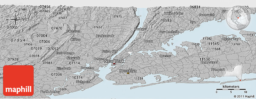 The panoramic gray ZIP code map represents one of several map styles available. Look at ZIP code 10029 from different perspectives.