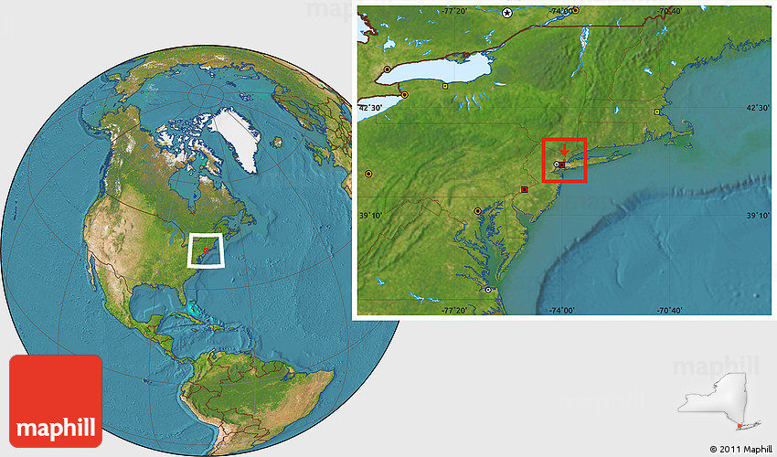 Maphill is a collection of map images. This image combines a satellite map with the globe centered on ZIP code 10040. Use the buttons under the image to switch to different map types.
