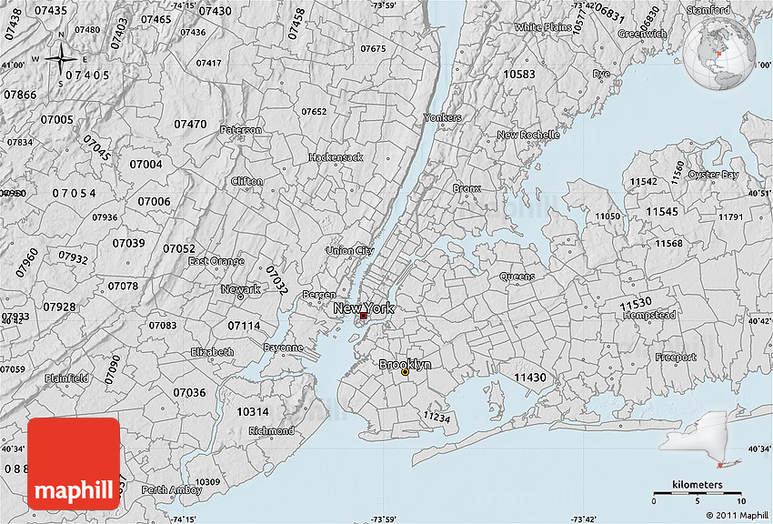 The flat silver style ZIP code map represents one of several map types available. Look at ZIP code 10128 from different perspectives.