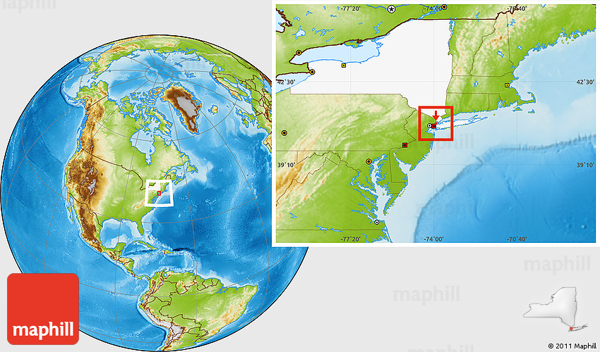 Maphill is a collection of map images. This image combines a physical map with the globe centered on ZIP code 10451. Use the buttons under the image to switch to different map types.