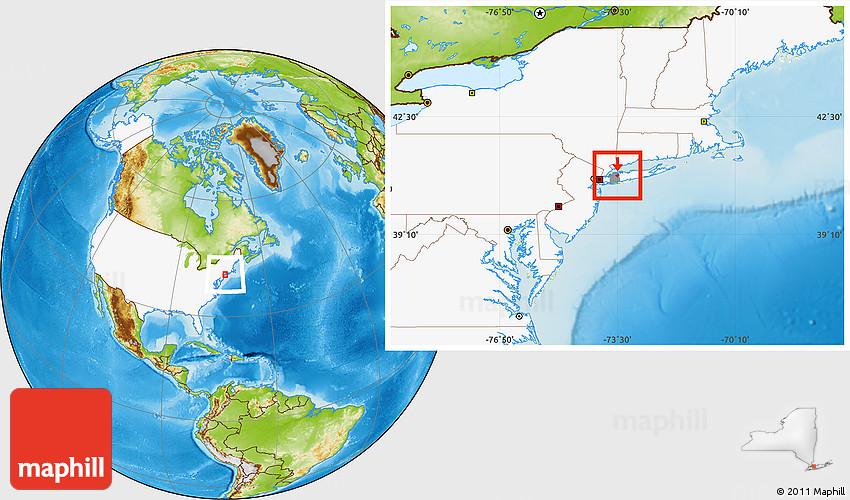 Maphill is a collection of map images. This image combines a physical map with the globe centered on ZIP code 11791. Use the buttons under the image to switch to different map types.