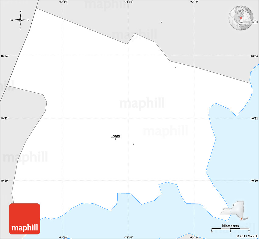 The simple silver style outline map represents one of several map types and styles available. Look at Bronx County, New York, United States from different perspectives.