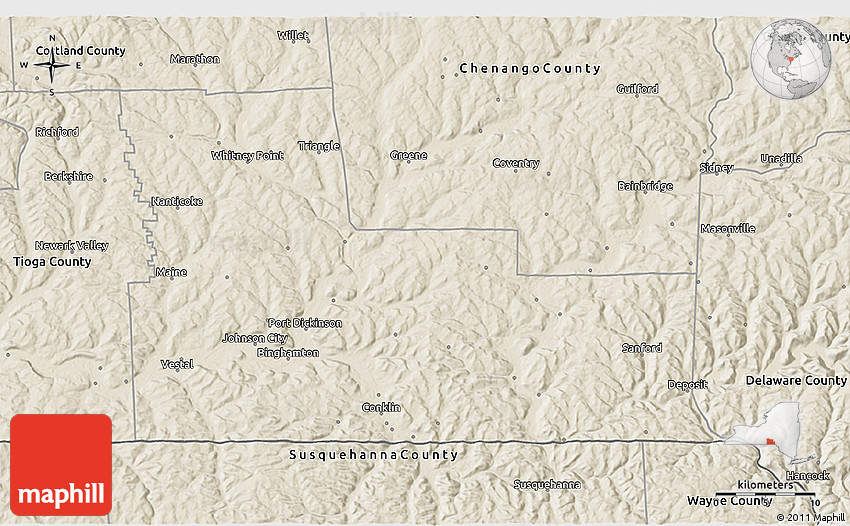 The value of Maphill lies in the possibility to look at the same area from several perspectives. Maphill presents the map of Broome County in a wide variety of map types and styles.