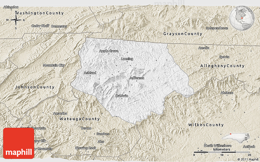 The value of Maphill lies in the possibility to look at the same area from several perspectives. Maphill presents the map of Ashe County in a wide variety of map types and styles.