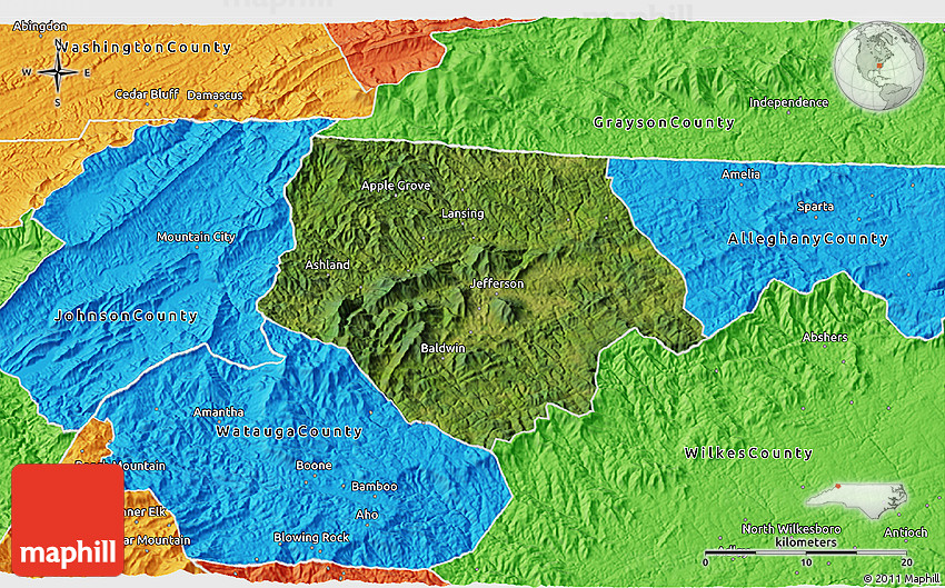 The value of Maphill lies in the possibility to look at the same area from several perspectives. Maphill presents the map of Ashe County in a wide variety of map types and styles.