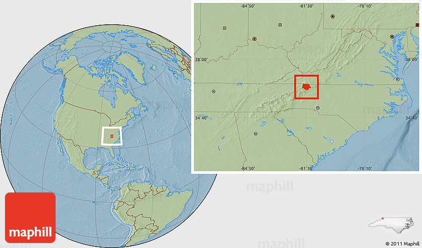 Maphill is a collection of map images. This image combines a savanna style map with the globe centered on Ashe County. Use the buttons under the image to switch to different map types.