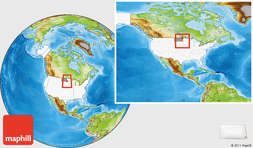 Maphill is a collection of map images. This image combines a physical map with the globe centered on ZIP code 58008. Use the buttons under the image to switch to different map types.