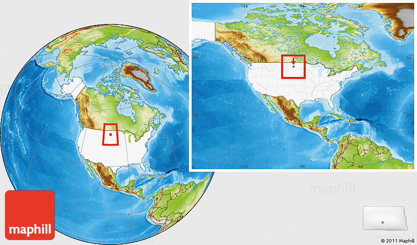 Maphill is a collection of map images. This image combines a physical map with the globe centered on ZIP code 58503. Use the buttons under the image to switch to different map types.