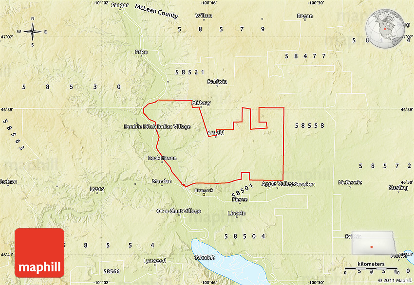 The value of Maphill lies in the possibility to look at the same area from several perspectives. Maphill presents the map of ZIP code 58503 in a wide variety of map types and styles.