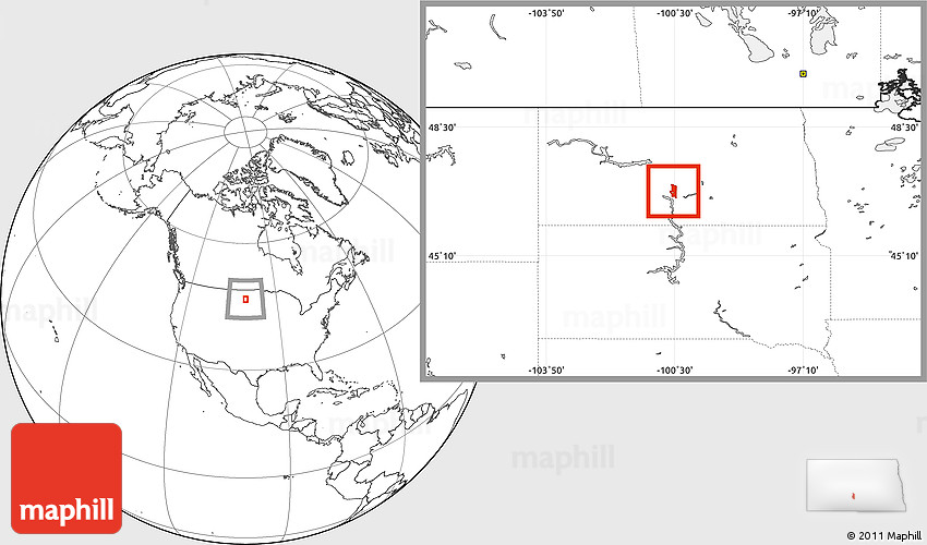 Maphill is a collection of map images. This image combines a blank map with the globe centered on ZIP code 58558. Use the buttons under the image to switch to different map types.