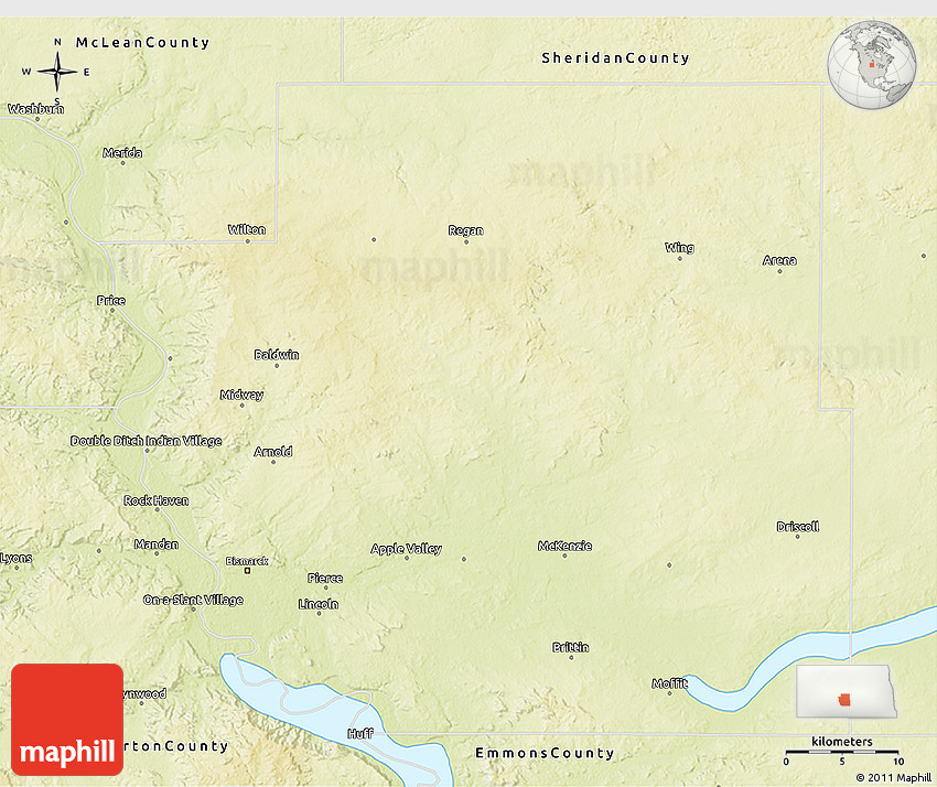 The value of Maphill lies in the possibility to look at the same area from several perspectives. Maphill presents the map of Burleigh County in a wide variety of map types and styles.