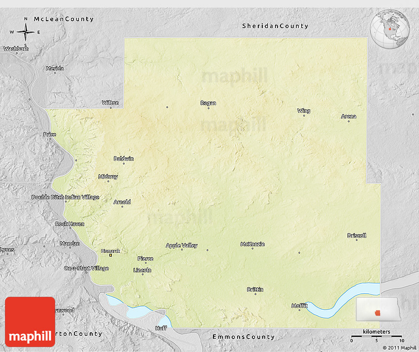 The value of Maphill lies in the possibility to look at the same area from several perspectives. Maphill presents the map of Burleigh County in a wide variety of map types and styles.