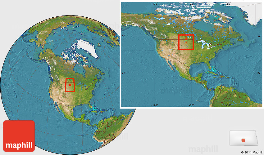 Maphill is a collection of map images. This image combines a satellite map with the globe centered on Burleigh County. Use the buttons under the image to switch to different map types.