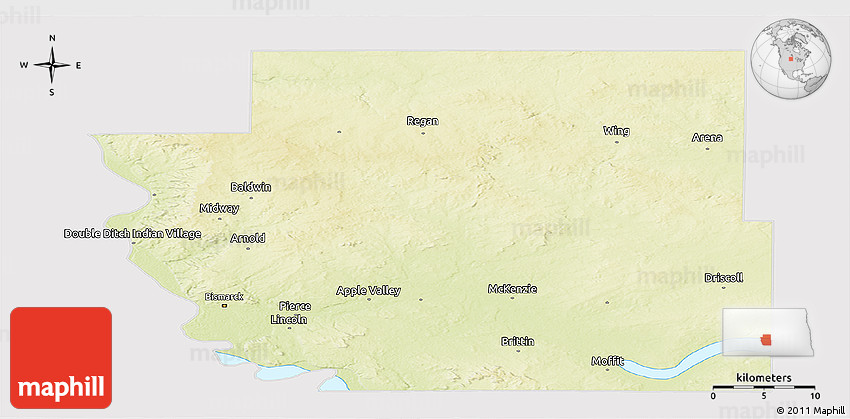 The panoramic physical map represents one of several map types and styles available. Look at Burleigh County, North Dakota, United States from different perspectives.