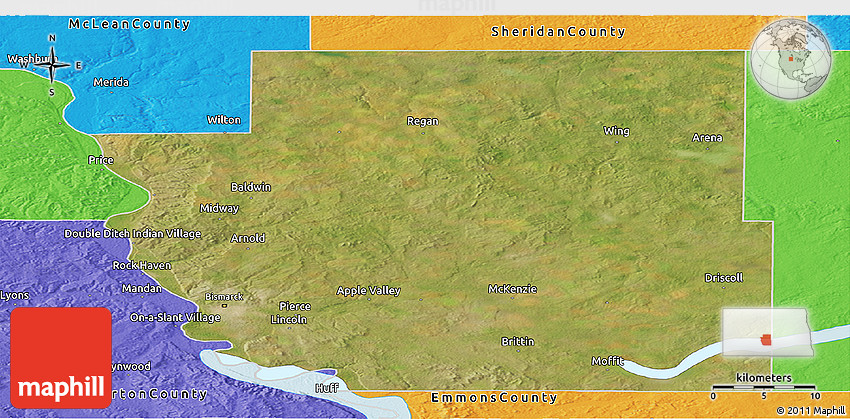 Satellite map shows the Earth's surface as it really looks like. The above map is based on satellite images taken on July 2004. This satellite map of Burleigh County is meant for illustration purposes only. For more detailed maps based on newer satellite and aerial images switch to a detailed map view.