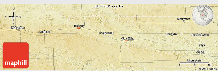 The panoramic physical map represents one of many map types and styles available. Look at Hebron, Morton County, North Dakota, United States from different perspectives.