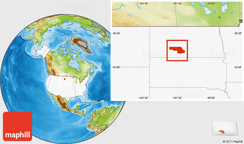 Maphill is a collection of map images. This image combines a physical map with the globe centered on Morton County. Use the buttons under the image to switch to different map types.