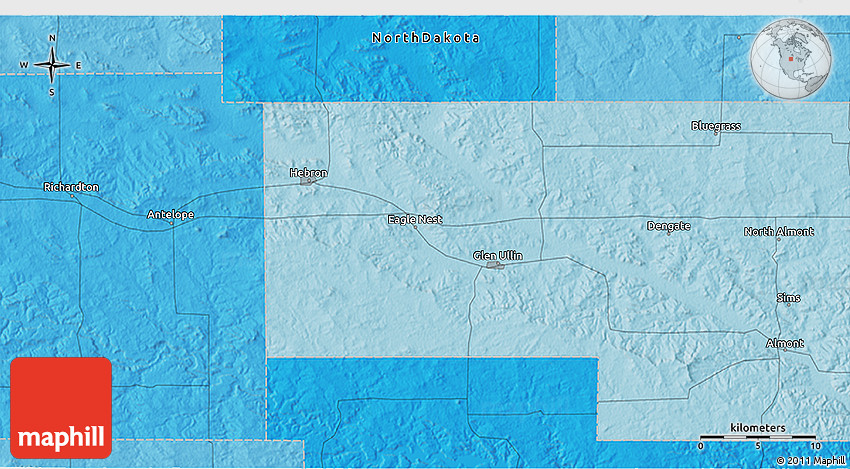 The 3D political map represents one of many map types and styles available. Look at North Almont, Morton County, North Dakota, United States from different perspectives.