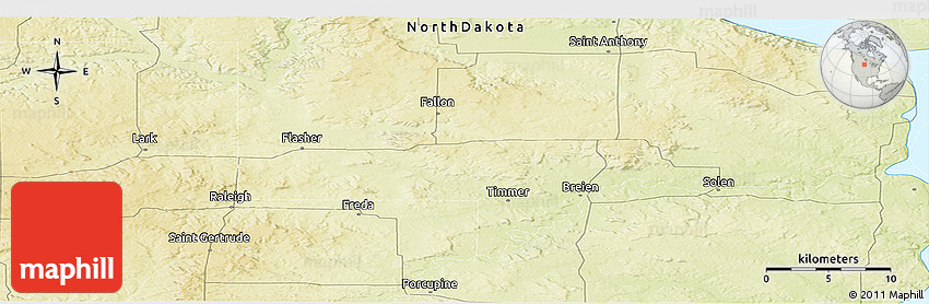 The panoramic physical map represents one of many map types and styles available. Look at Saint Anthony, Morton County, North Dakota, United States from different perspectives.