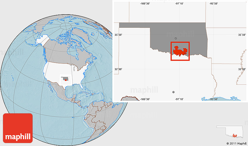 Maphill is a collection of map images. This image combines a gray map with the globe centered on ZIP codes starting with 734. Use the buttons under the image to switch to different map types.