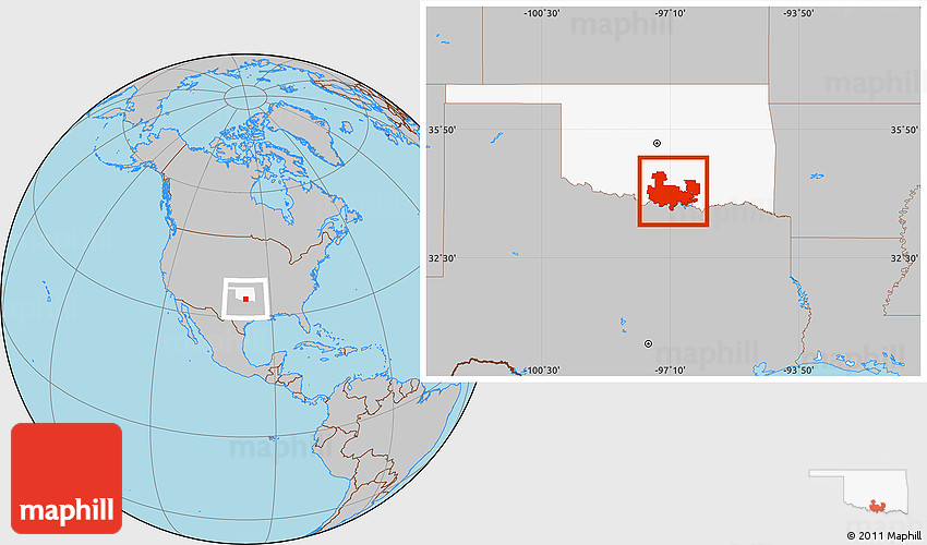 Maphill is a collection of map images. This image combines a gray map with the globe centered on ZIP codes starting with 734. Use the buttons under the image to switch to different map types.