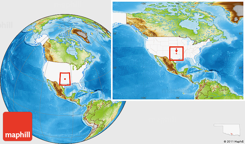 Maphill is a collection of map images. This image combines a physical map with the globe centered on ZIP code 73401. Use the buttons under the image to switch to different map types.