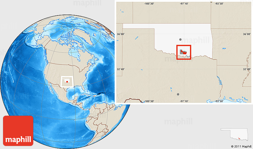 Maphill is a collection of map images. This image combines a shaded relief map with the globe centered on ZIP code 73401. Use the buttons under the image to switch to different map types.