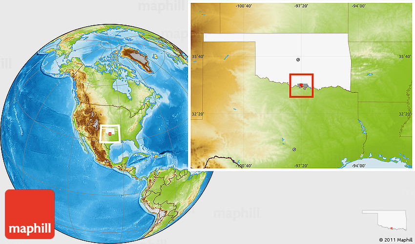 Maphill is a collection of map images. This image combines a physical map with the globe centered on ZIP code 73430. Use the buttons under the image to switch to different map types.