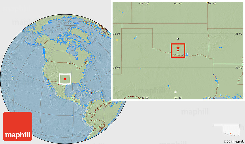 Maphill is a collection of map images. This image combines a savanna style map with the globe centered on ZIP code 73437. Use the buttons under the image to switch to different map types.