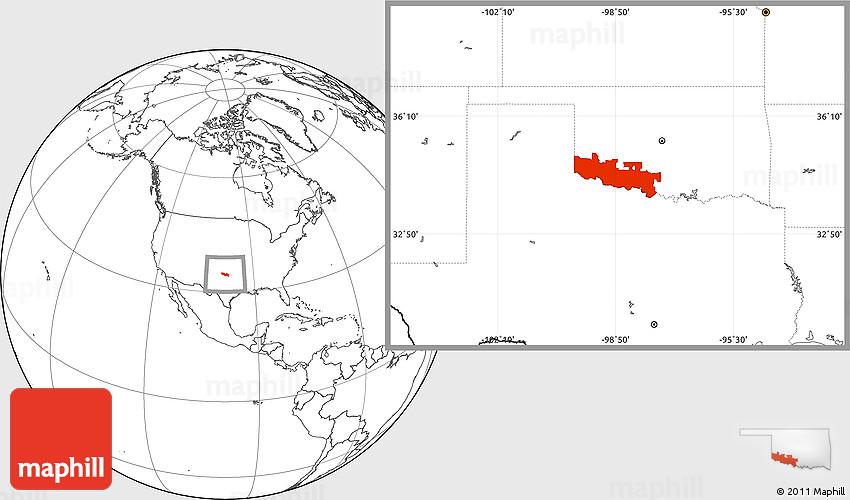 Maphill is a collection of map images. This image combines a blank map with the globe centered on ZIP codes starting with 735. Use the buttons under the image to switch to different map types.