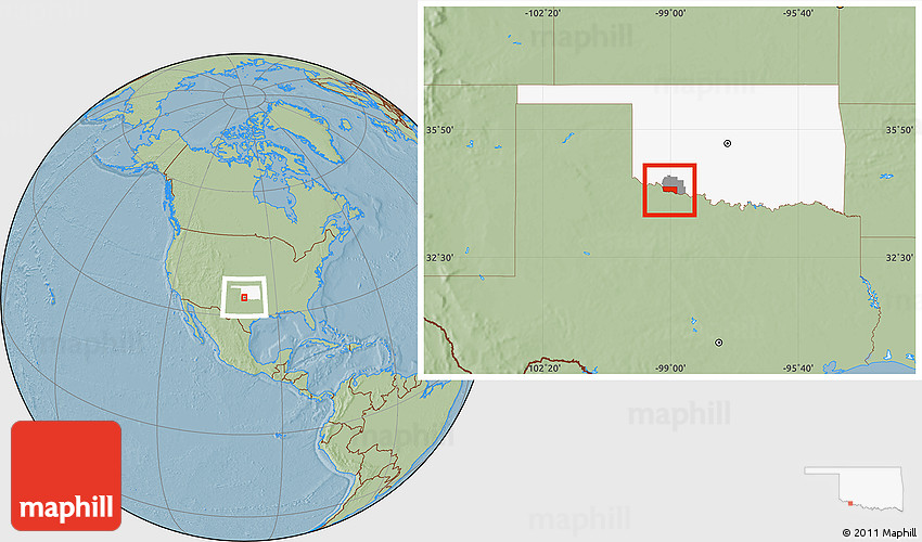 Maphill is a collection of map images. This image combines a savanna style map with the globe centered on ZIP code 73530. Use the buttons under the image to switch to different map types.