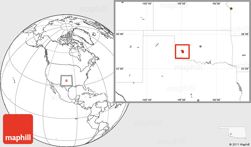 Maphill is a collection of map images. This image combines a blank map with the globe centered on ZIP code 73655. Use the buttons under the image to switch to different map types.