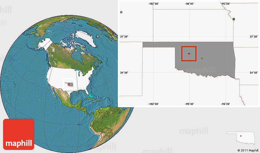 Maphill is a collection of map images. This image combines a satellite map with the globe centered on ZIP code 73658. Use the buttons under the image to switch to different map types.