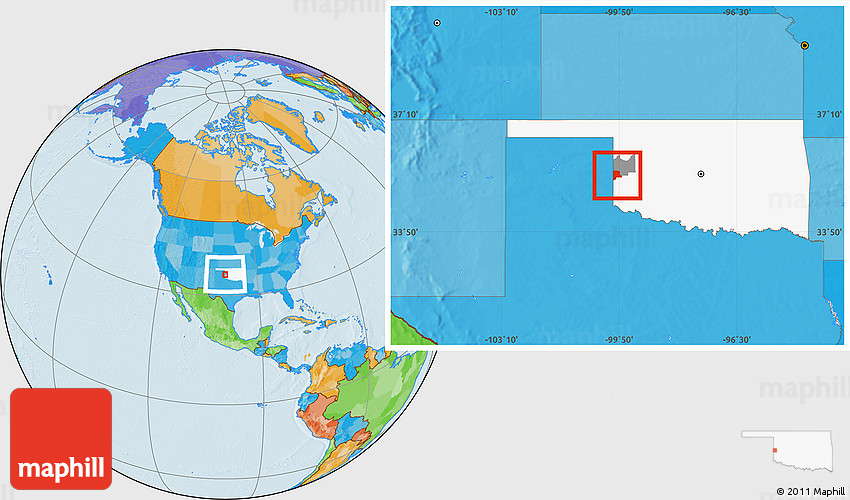 Maphill is a collection of map images. This image combines a political map with the globe centered on ZIP code 73666. Use the buttons under the image to switch to different map types.