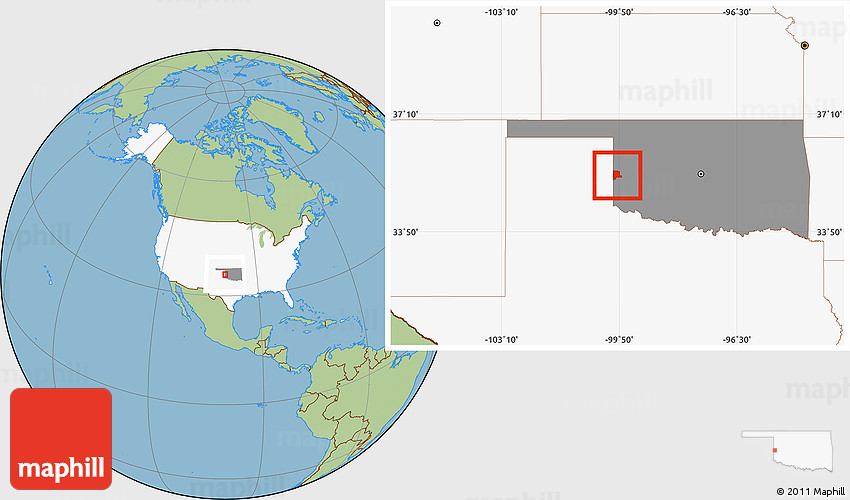 Maphill is a collection of map images. This image combines a savanna style map with the globe centered on ZIP code 73666. Use the buttons under the image to switch to different map types.