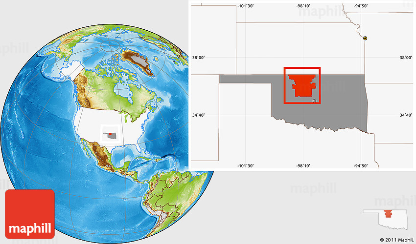 Maphill is a collection of map images. This image combines a physical map with the globe centered on ZIP codes starting with 737. Use the buttons under the image to switch to different map types.