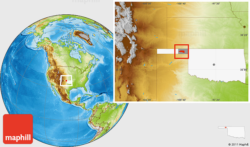 Maphill is a collection of map images. This image combines a physical map with the globe centered on ZIP code 73932. Use the buttons under the image to switch to different map types.