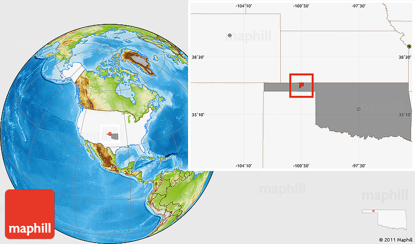 Maphill is a collection of map images. This image combines a physical map with the globe centered on ZIP code 73950. Use the buttons under the image to switch to different map types.