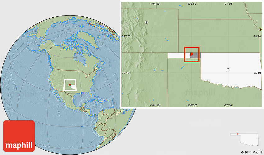 Maphill is a collection of map images. This image combines a savanna style map with the globe centered on ZIP code 73950. Use the buttons under the image to switch to different map types.