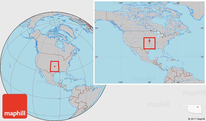 Maphill is a collection of map images. This image combines a gray map with the globe centered on ZIP code 74107. Use the buttons under the image to switch to different map types.