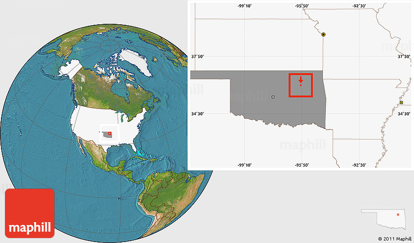 Maphill is a collection of map images. This image combines a satellite map with the globe centered on ZIP code 74112. Use the buttons under the image to switch to different map types.