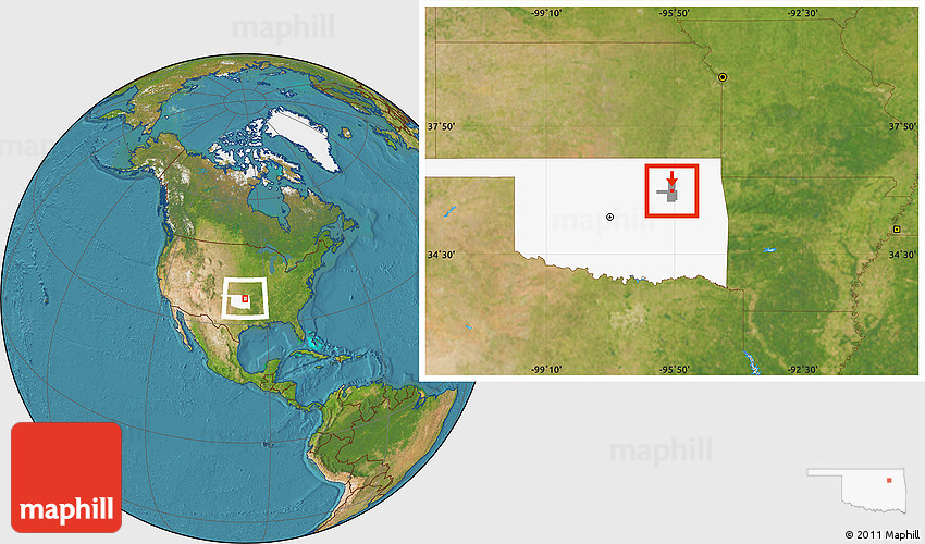 Maphill is a collection of map images. This image combines a satellite map with the globe centered on ZIP code 74112. Use the buttons under the image to switch to different map types.