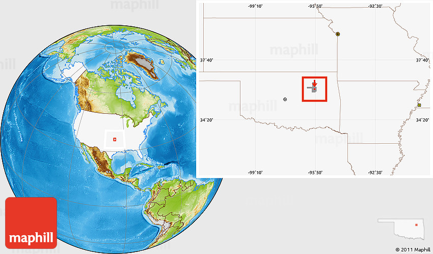 Maphill is a collection of map images. This image combines a physical map with the globe centered on ZIP code 74133. Use the buttons under the image to switch to different map types.