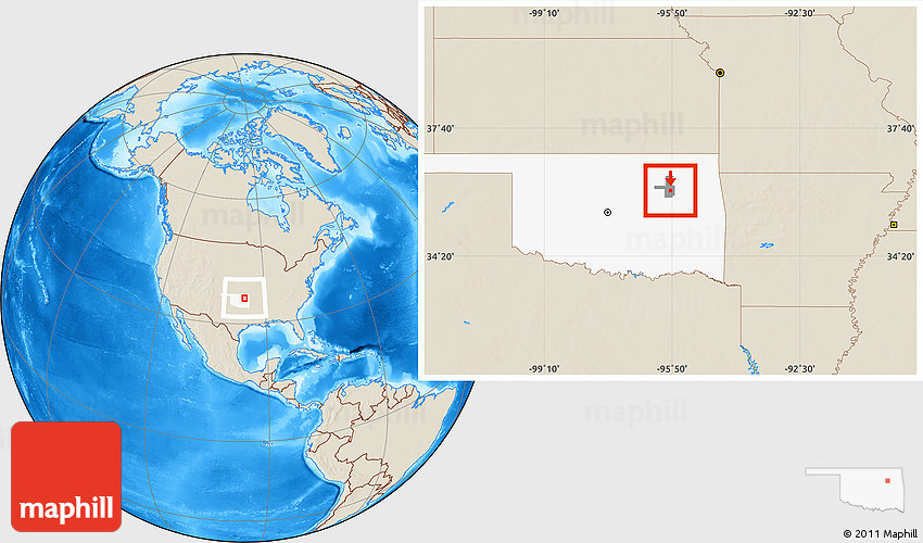 Maphill is a collection of map images. This image combines a shaded relief map with the globe centered on ZIP code 74133. Use the buttons under the image to switch to different map types.