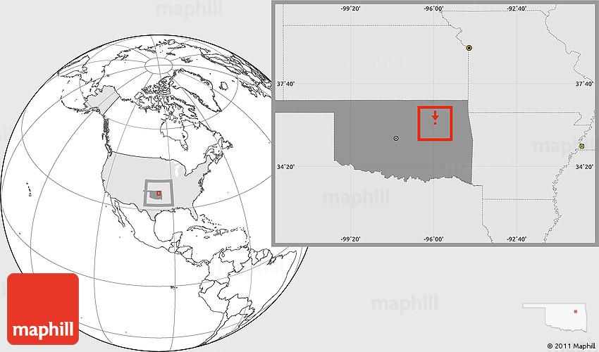 Maphill is a collection of map images. This image combines a blank map with the globe centered on ZIP code 74136. Use the buttons under the image to switch to different map types.
